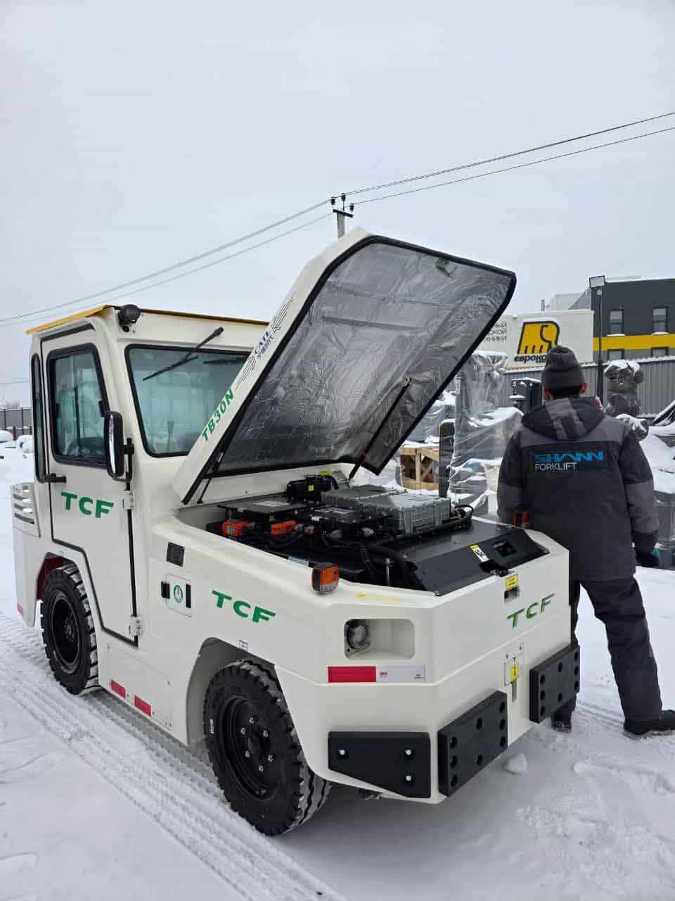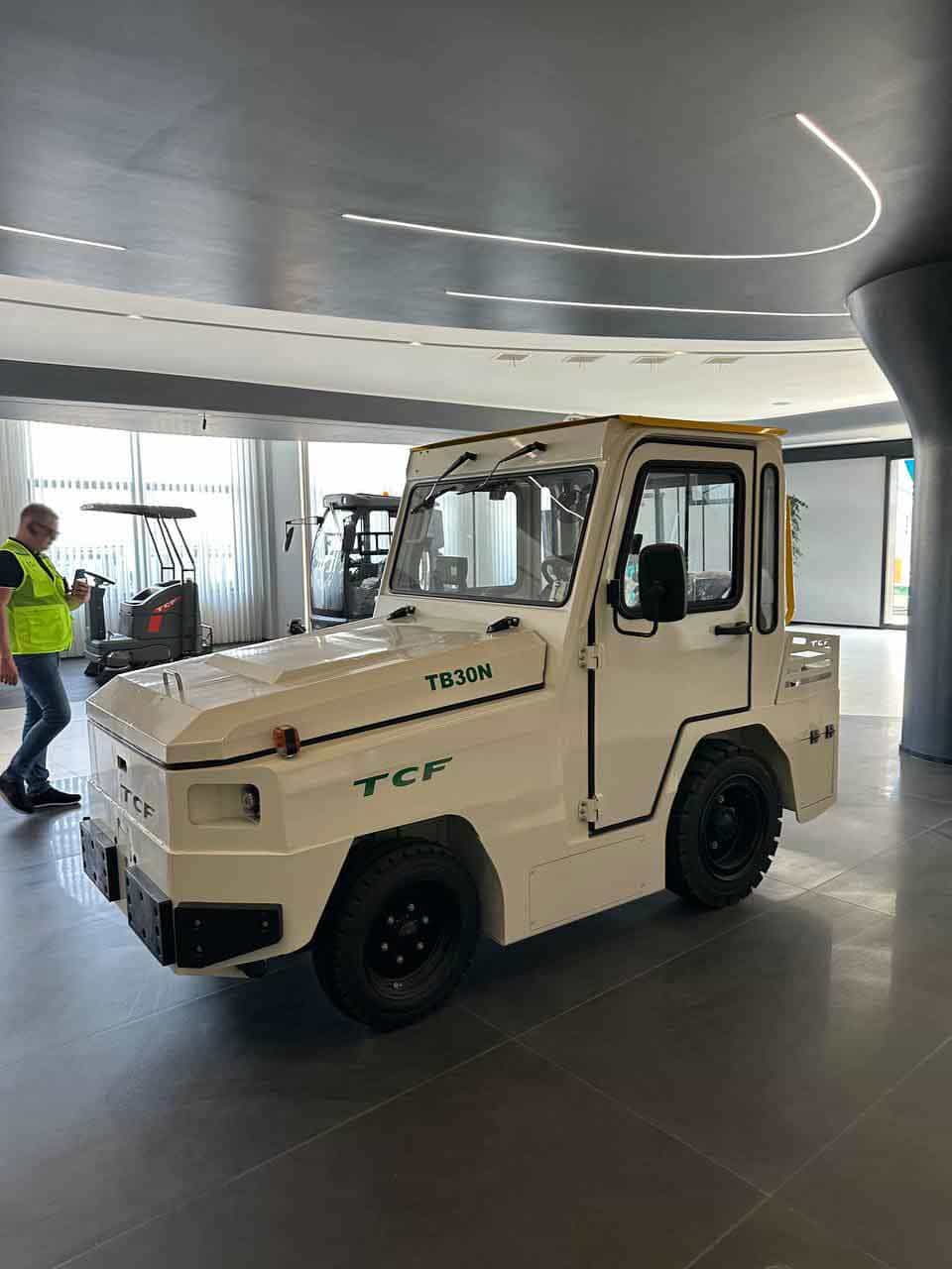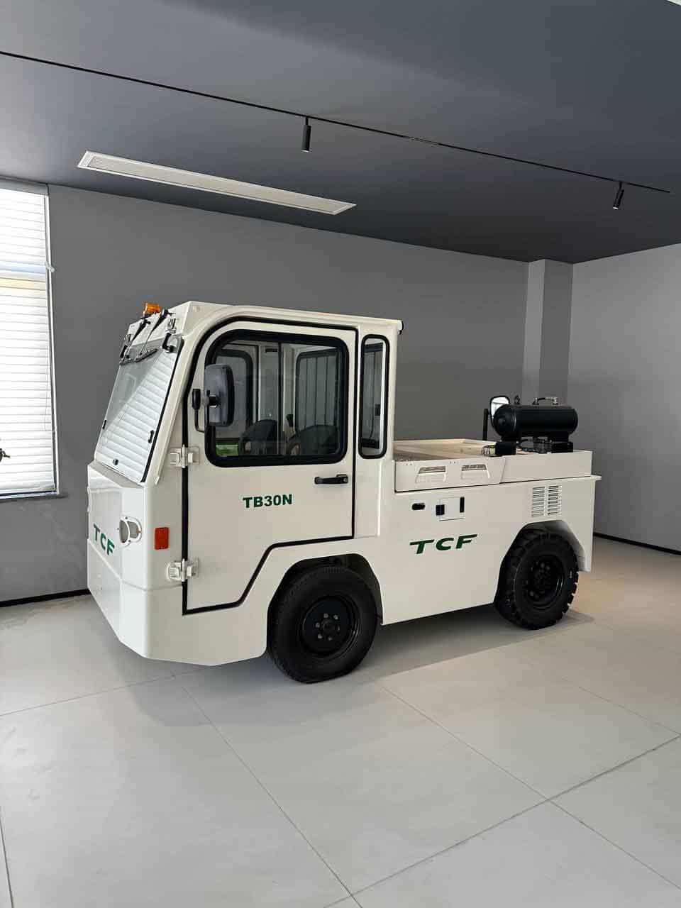 Компактные габариты (3420 × 1450 × 2000 мм) и продуманная развесовка при массе 4000 кг делают TB30N удобным для работы в аэропортах, морских и речных портах, на железнодорожных станциях, а также на производственных и складских объектах.